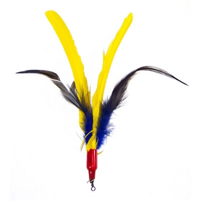 Replacement feathers for Da Bird.™ Connects to the string as easily as opening and closing a safety pin. Each 8" Da Bird feather refill is handcrafted in the USA from top quality materials.