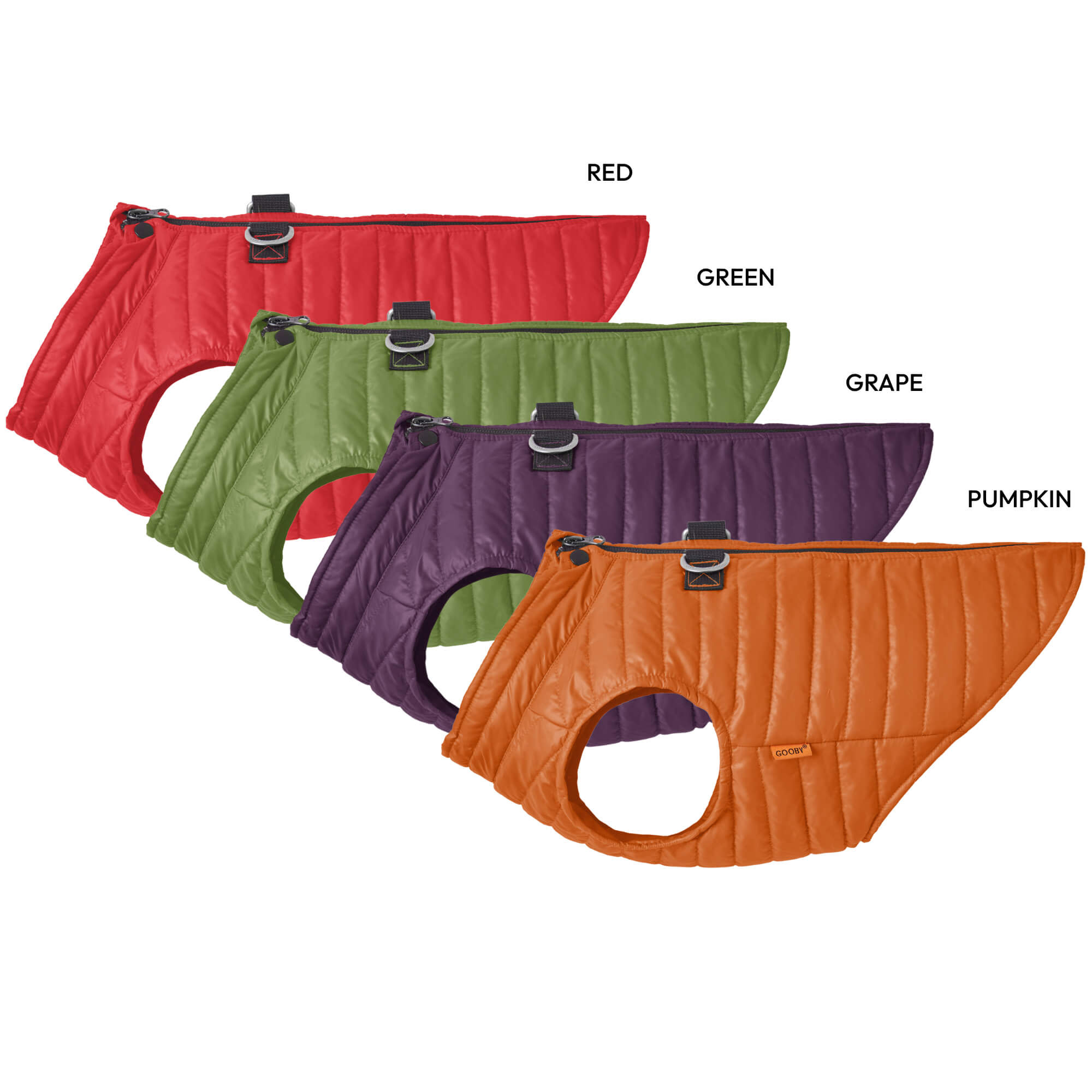 The Gooby Puffer Vest is your dog’s answer to cold-weather comfort without the bulk. Designed for ease, warmth, and style, it weighs less than 3 ounces—about the same as three slices of sandwich bread. It’s easy to wear, pack, and store, while still offering protection from chilly winds and light rain.