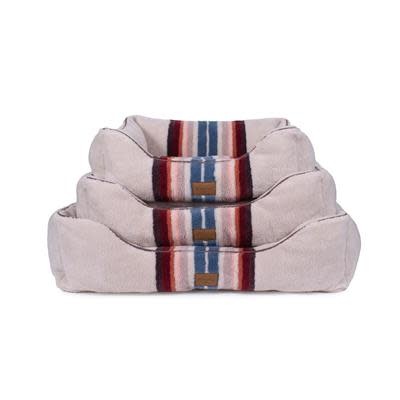 Elevate your pup's sleeping experience with the Pendleton Serape Rosewood Berber Kuddler Dog Bed. This premium dog bed was crafted to provide your furry friend with the ultimate in relaxation and relief. The vibrant Pendleton stripes, inspired by the celebrated serape patterns of Saltillo, Mexico, add a stylish touch to any space. Meanwhile, the plush berber material and overstuffed cushioning cradle your pet in blissful comfort.