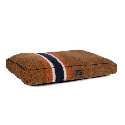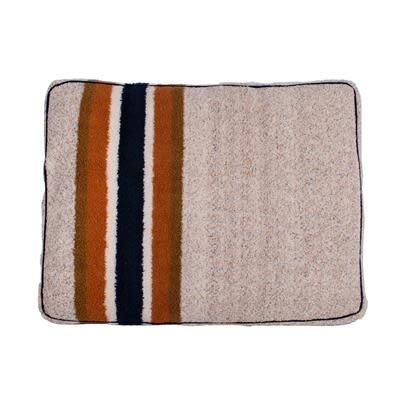 As comfortable as they are beautiful, our Napper Pillow Beds sport a cozy shearling Berber cover with the distinctive Shinola brand stripe framed with contrast cording. A rugged cotton canvas underside takes on the wear and tear of different surfaces. Over-filled with recycled high-loft MemoryFiber polyester, welcomes comfort and support. The liner includes a unique channel design to keep fiber from shifting and spreading. A concealed zipper allows the cover to be removed for easy machine washing. Finished with the Shinola label featuring their distinctive lightening bolt design. Designed and assembled in the USA with imported components.